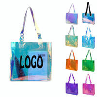 चमकदार प्लास्टिक शॉपिंग pvc बैग लेजर पारदर्शी होलोग्राफिक iriवंश महिला समुद्र तट फैशन टोटे बैग कस्टम मुद्रित लोगो के साथ